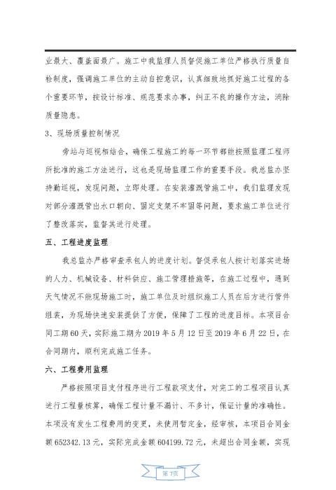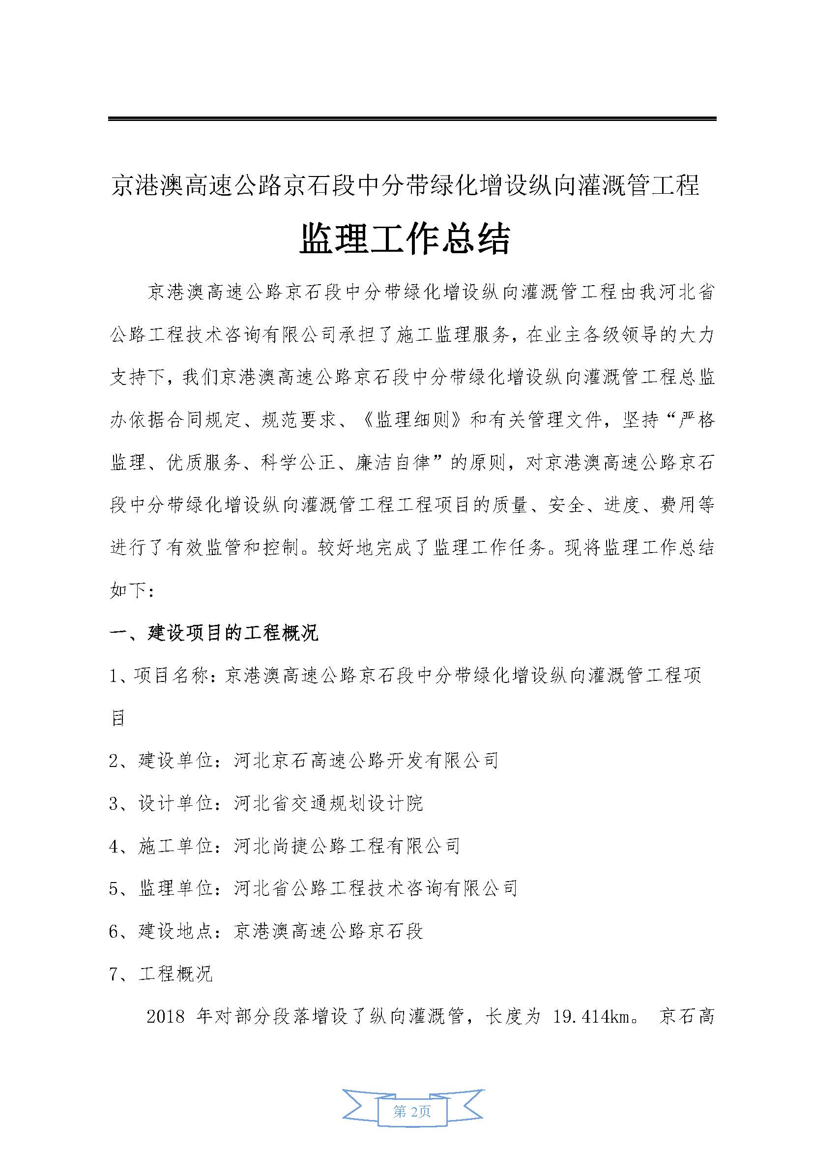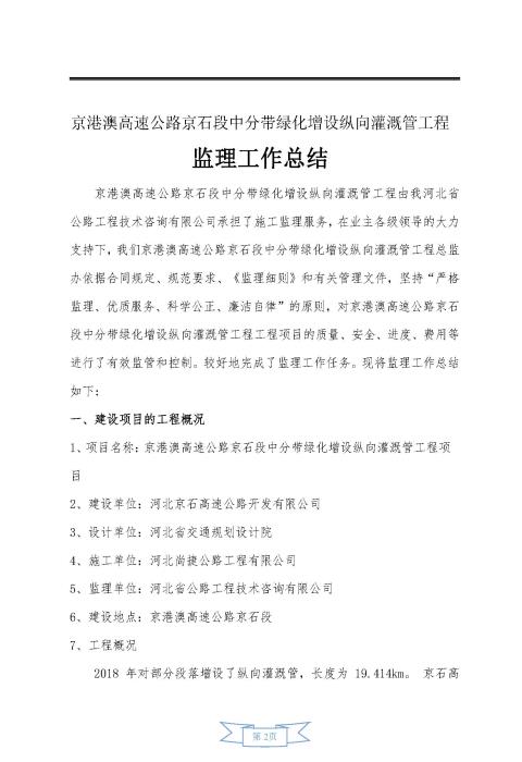 中分帶綠化增設(shè)縱向灌溉管工程監(jiān)理報(bào)告