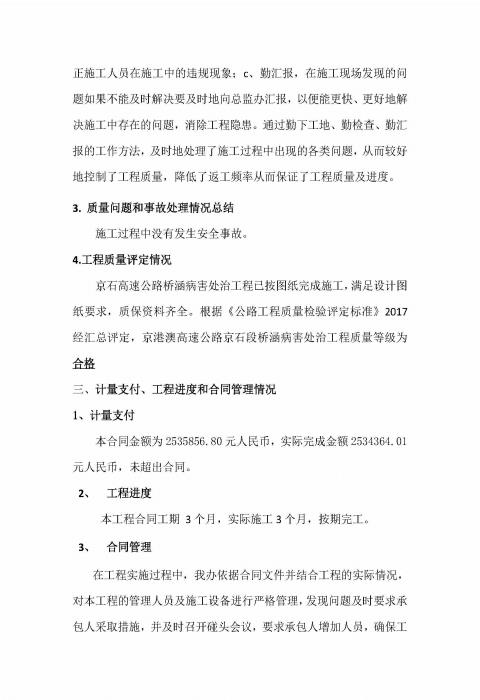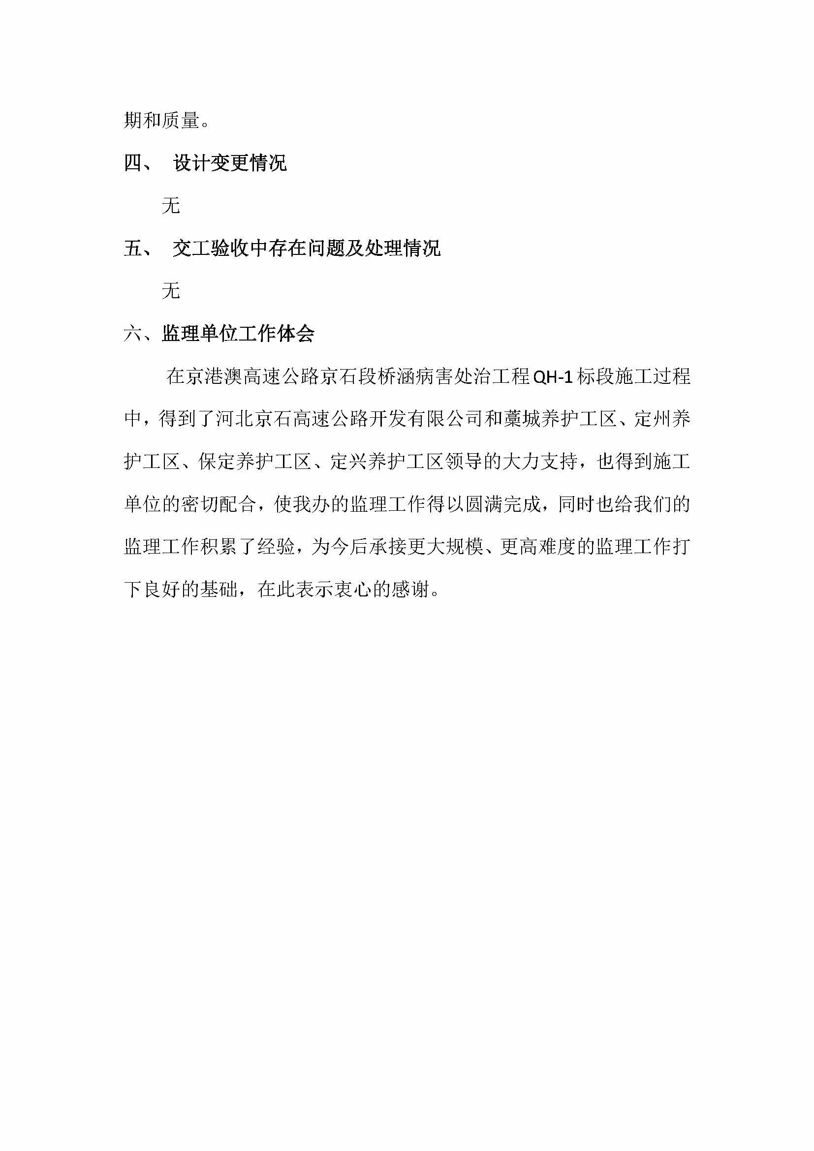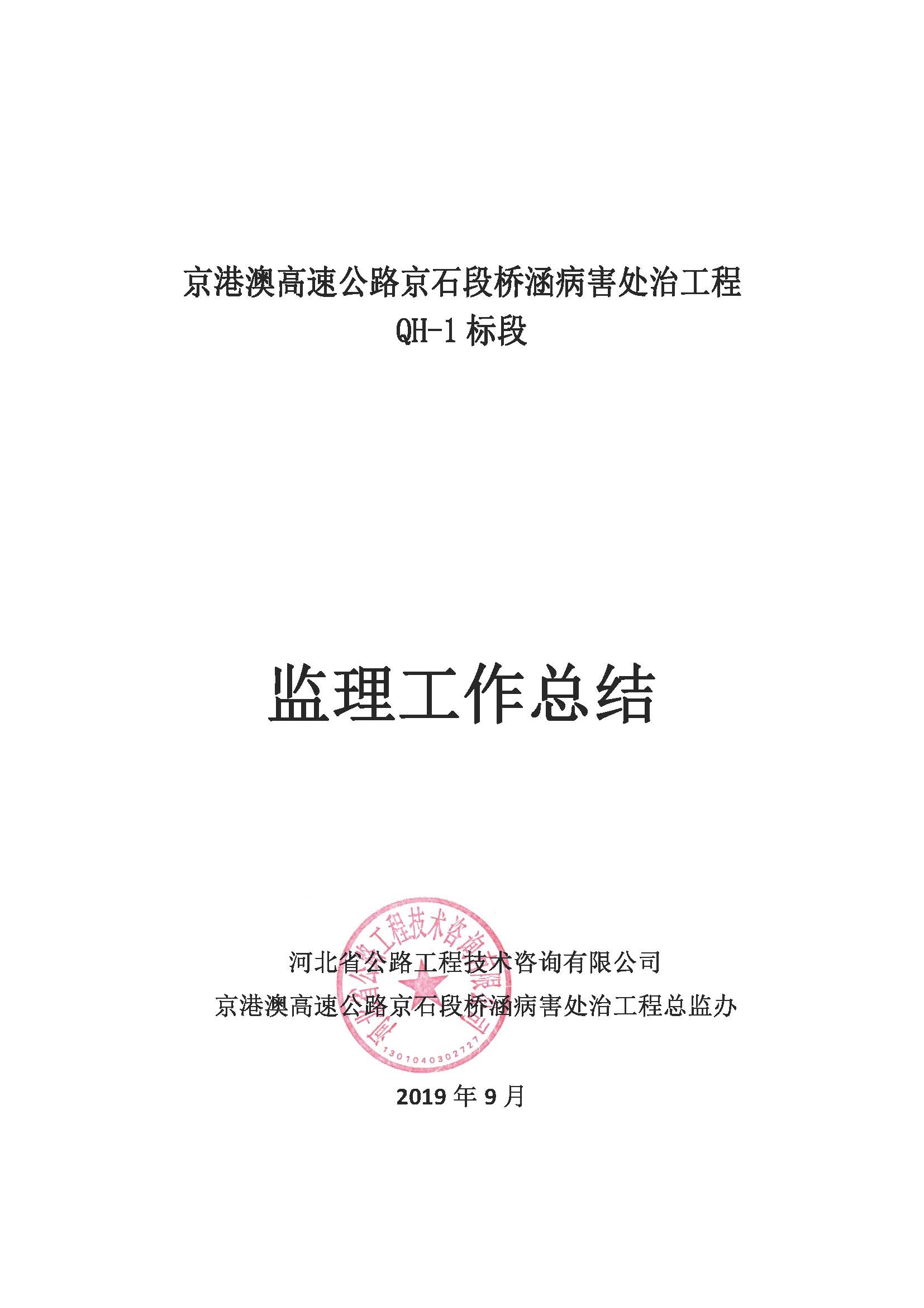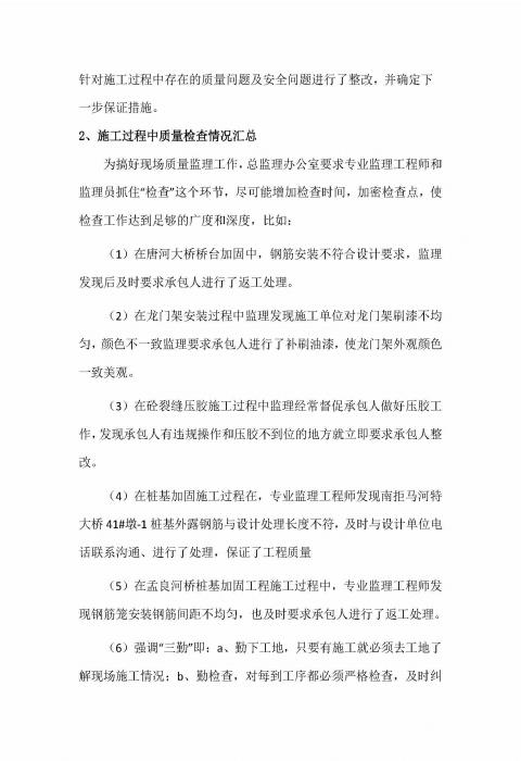 橋涵病害處治工程QH-1標監(jiān)理報告