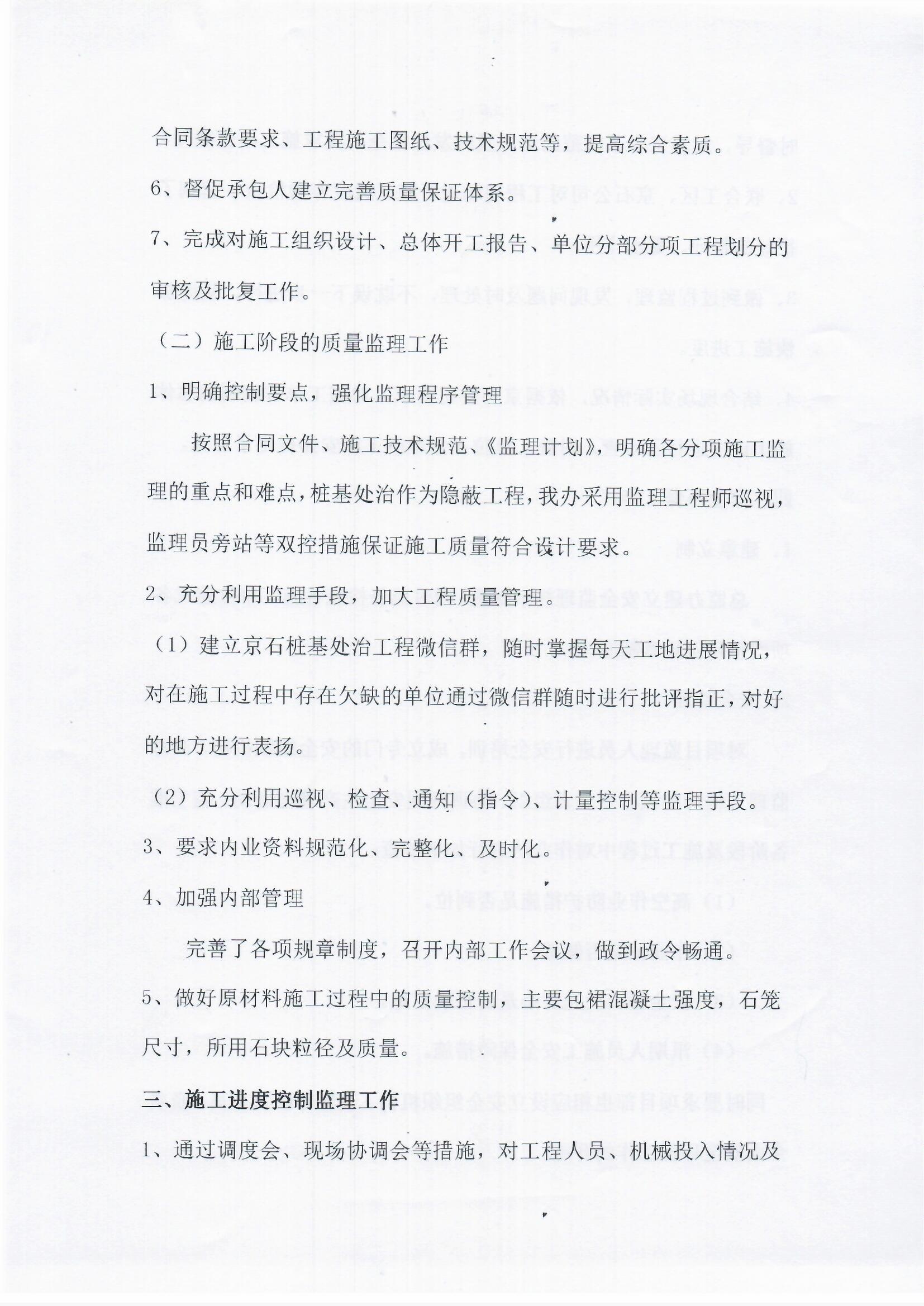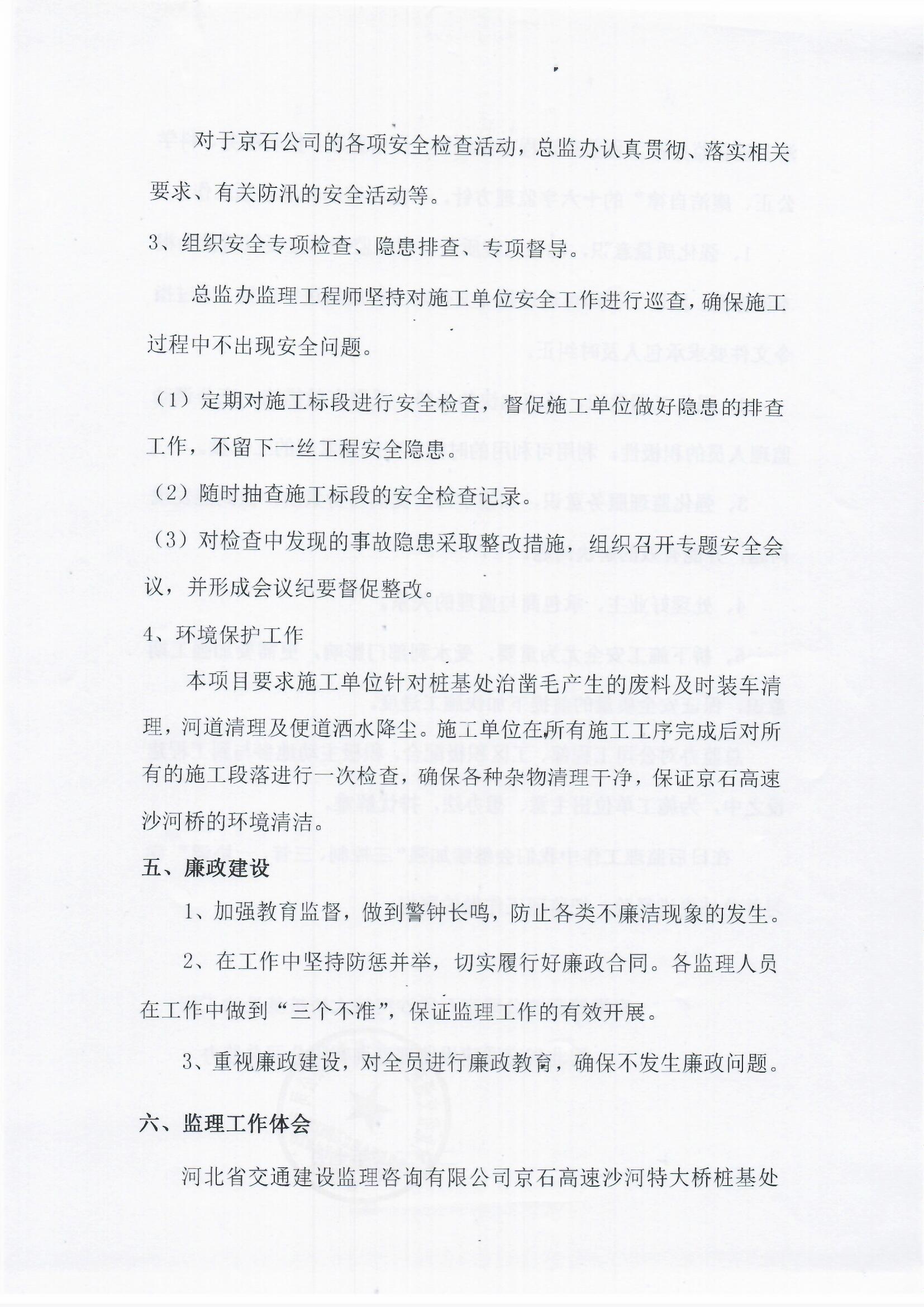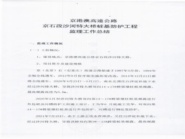 京港澳高速公路京石段沙河特大橋樁基防護處治工程監(jiān)理報告