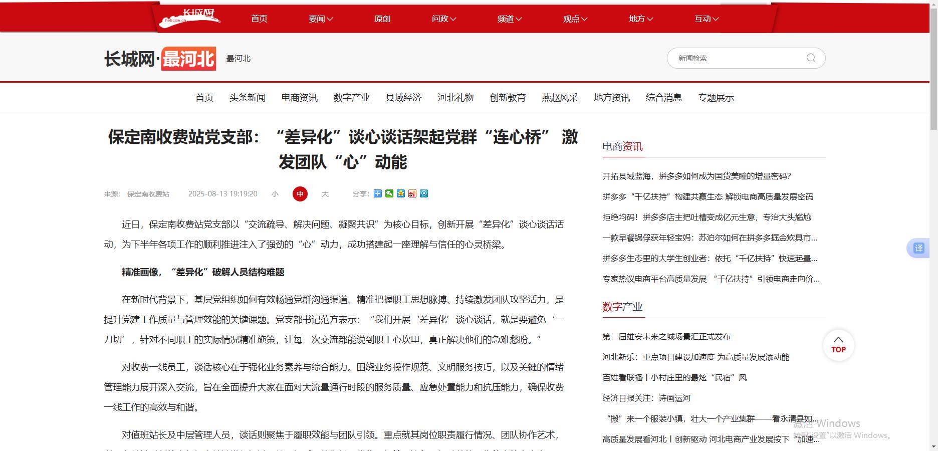 【長城網(wǎng)最河北】保定南收費(fèi)站黨支部:“差異化”談心談話架起黨群“連心橋” 激發(fā)團(tuán)隊(duì)“心”動能