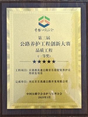 近日,在中國公路學會養(yǎng)護與管理分會第十四屆學術(shù)年會暨第三屆公路養(yǎng)護工程創(chuàng)新大賽表彰儀式上,河北交投集團所屬京石高速公路公司的“智能養(yǎng)護應用”項目憑借智能化技術(shù)創(chuàng)新成果,從全國優(yōu)秀案例中脫穎而出,榮獲品質(zhì)工程一等獎。