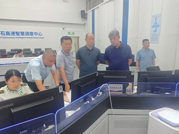 在監(jiān)控大廳,卞照躍、潘曉海一行深入了解了“叫應(yīng)”機(jī)制預(yù)警運(yùn)行情況,通過(guò)監(jiān)控大屏查看了強(qiáng)降雨路段及收費(fèi)站管控信息,并聽(tīng)取了有關(guān)負(fù)責(zé)人關(guān)于預(yù)警響應(yīng)情況和準(zhǔn)全天候通行措施的匯報(bào)。