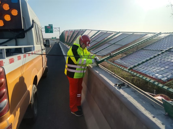 在實(shí)際“迎風(fēng)戰(zhàn)”中,藁城工區(qū)展現(xiàn)出了高度的責(zé)任感和專業(yè)素養(yǎng)。12日清晨,利用“封路”時(shí)機(jī)進(jìn)行了“風(fēng)后”應(yīng)急檢查。應(yīng)急三隊(duì)巡查至K210北京方向時(shí),發(fā)現(xiàn)20米左右的橋梁防拋網(wǎng)發(fā)生傾斜,隨時(shí)有墜落風(fēng)險(xiǎn)。巡查人員張陽、尤雁明迅速行動(dòng),他們一方面在倒伏路段設(shè)置警示標(biāo)志,封閉應(yīng)急車道,引導(dǎo)車輛減速繞行;另一方面,利用隨車攜帶的繩索等工具迅速將倒伏的防拋網(wǎng)與車輛進(jìn)行了緊急連接固定,防止發(fā)生二次事故;同時(shí)迅速通知承包商快速抵達(dá)現(xiàn)場(chǎng)進(jìn)行了清除加固,從發(fā)現(xiàn)險(xiǎn)情到處理完畢,僅用時(shí)40分鐘。