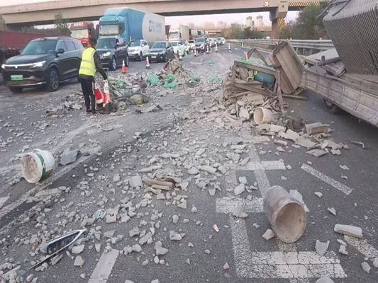聞令而動(dòng),應(yīng)急響應(yīng)“快準(zhǔn)狠”。險(xiǎn)情即命令!工區(qū)立即啟動(dòng)應(yīng)急預(yù)案,養(yǎng)護(hù)人員快速集合,攜帶清障設(shè)備火速趕赴現(xiàn)場。抵達(dá)后發(fā)現(xiàn),路面堆滿水泥板碎塊,占據(jù)行車道,人工清理效率受限。工區(qū)當(dāng)即調(diào)整方案,增派鏟車、吊車等大型機(jī)械入場作業(yè),同時(shí)調(diào)配10名工作人員協(xié)同清理,同步安排專人在現(xiàn)場指揮交通,引導(dǎo)車輛有序通行,緩解擁堵。