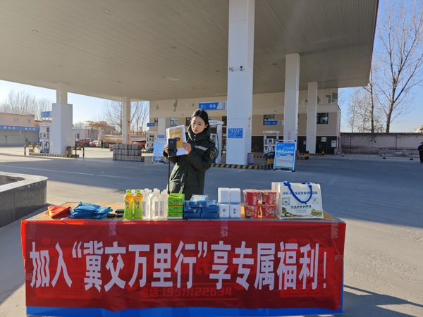 宣傳小組在明元加油站、雙禾物流園等車輛集中區(qū)域設(shè)立固定宣傳點(diǎn),通過懸掛京石高速宣傳旗幟、布置展板、發(fā)放單頁及贈(zèng)送禮品等方式,吸引司乘人員駐足咨詢。工作人員主動(dòng)上前講解,清晰對(duì)比高速與地方道路的通行效率,突出京石高速在快捷通行方面的顯著優(yōu)勢(shì),并詳細(xì)介紹相關(guān)權(quán)益:通行可累積“冀交萬里行”平臺(tái)積分兌換多樣權(quán)益,貨車還可享受專屬通行費(fèi)優(yōu)惠,切實(shí)幫助降低運(yùn)輸成本。宣傳過程中,現(xiàn)場(chǎng)同步提供ETC辦理、實(shí)時(shí)路況查詢及“空車配載”信息等一站式服務(wù),持續(xù)提升司乘體驗(yàn)。為進(jìn)一步擴(kuò)大宣傳覆蓋面與即時(shí)性,活動(dòng)同步引入了線上直播,對(duì)現(xiàn)場(chǎng)宣傳實(shí)況、政策講解及服務(wù)過程進(jìn)行呈現(xiàn),與線下活動(dòng)形成有效互補(bǔ)。