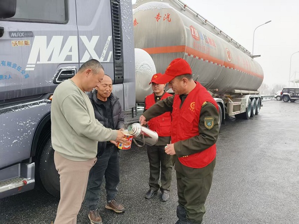 為打贏此次除雪保暢攻堅(jiān)戰(zhàn),徐水站嚴(yán)格落實(shí)上級(jí)指示精神,制定了九條工作措施,全力保障道路安全通行。具體行動(dòng)上,組織在站職工對(duì)收費(fèi)車道、廣場(chǎng)等關(guān)鍵區(qū)域撒融雪劑,從源頭上防范路面結(jié)冰及車輛追尾等安全事故,迅速組織人力投入收費(fèi)站口除雪作業(yè)。同時(shí),徐水站在做好保暢通工作的同時(shí)做好延伸服務(wù)。將管控信息及時(shí)發(fā)布至貨車營(yíng)銷群內(nèi),為過往司乘發(fā)放安全通行提示卡,安排專職人員協(xié)助300余名司乘注冊(cè)“限速通行”小程序順利通行;針對(duì)因封路滯留在收費(fèi)廣場(chǎng)的司乘,工作人員主動(dòng)送上23桶泡面、10壺?zé)崴葢?yīng)急物資,緩解司乘的焦躁情緒。