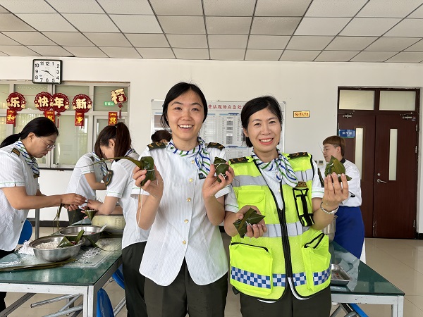 大鍋被這千姿百態(tài)的粽子堆滿了,這份沉甸甸的“滿”,像極了大家心中膨脹的情感,這層層疊疊的粽葉包裹著的是我們對工作順?biāo)斓钠诩剑瑢λ境似桨驳淖8?、對佳?jié)圓滿的愿望,就讓這粽葉飄香,越過崗?fù)?,守護(hù)每一位司乘,為其保駕護(hù)航。