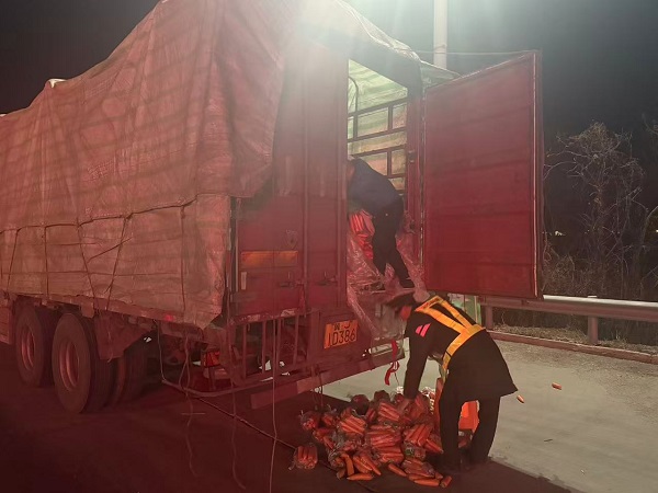 當(dāng)班班長立即用對講機呼叫支援。不過幾十秒,兩個身著反光背心的身影小跑過來。沒有指揮,沒有多話,他們很自然地蹲下身,和司機一起將滾落的胡蘿卜攏成小堆。寒夜里,只聽見短促的呼吸聲,和胡蘿卜被輕輕放入車中的“哐、哐”輕響。