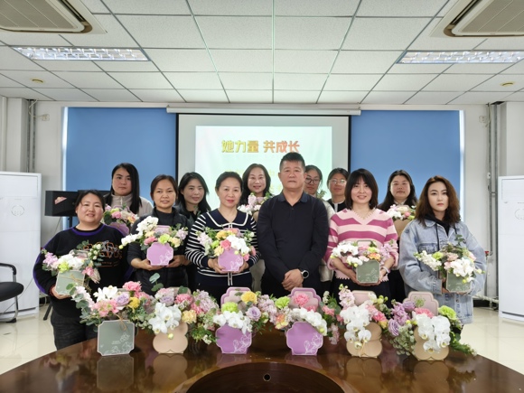 活動(dòng)以“春日來(lái)信 — 與花對(duì)話遇見更好的自己”為主題,于3月7日上午9點(diǎn)在會(huì)議室準(zhǔn)時(shí)拉開帷幕?,F(xiàn)場(chǎng)布置溫馨雅致,充滿了春日的氣息。18 位女職工齊聚一堂,在輕松愉悅的氛圍中開啟了這場(chǎng)特別的活動(dòng)之旅。
