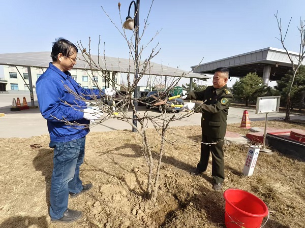 植樹的同時,職工們還對站區(qū)綠化帶進行全面清理。他們修剪枯枝、清除雜草,將垃圾統(tǒng)一處理,使綠化帶煥然一新。新栽的樹苗與整齊的綠植相映成趣,為站區(qū)增添了清新與活力。