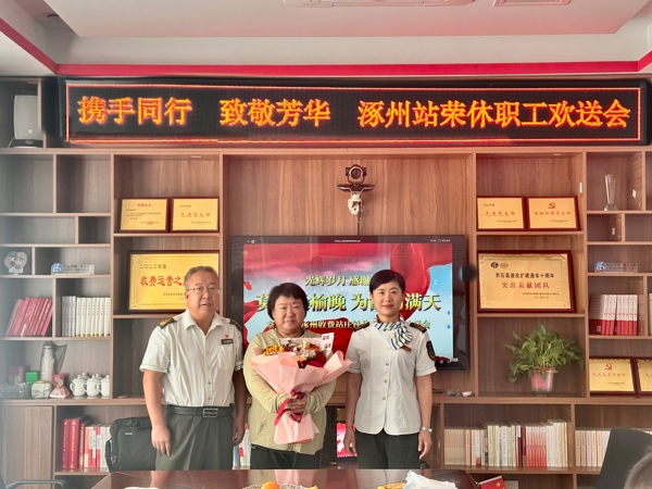 6月3日,京石高速涿州收費(fèi)站的會(huì)議室里流淌著暖意與眷戀。一場(chǎng)以"芳華如歌,感恩有您"為主題的退休歡送會(huì),為辦公室莊鐵華同志三十年的職場(chǎng)歲月鋪就了一條盛滿鮮花與掌聲的告別之路。