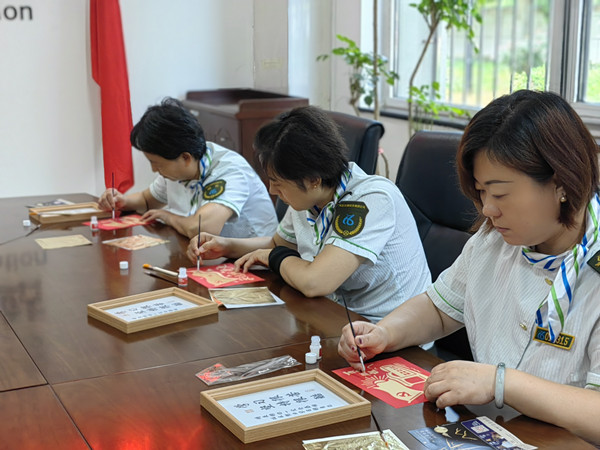 在制作過程中,大家相互交流技巧,分享對黨的光輝歷程的感悟。有人感慨:“看著這一幅幅金箔畫逐漸成型,就像回顧了黨的百年奮斗史,先輩們的付出太不容易了?!边@不僅是一場手工制作,更是一次對黨的歷史的深情回望,每一筆每一劃都飽含著職工們對黨的熱愛與敬意。