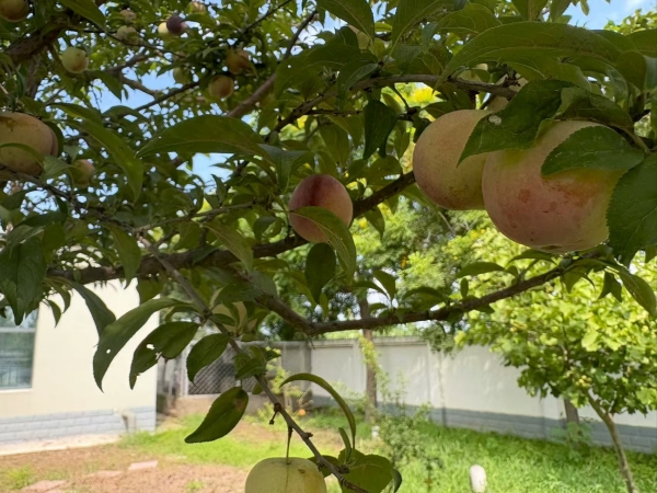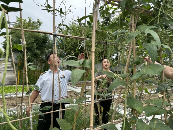走進(jìn)果蔬園,幾棵李子樹枝繁葉茂,紫紅、翠綠的果子掛滿枝頭,飽滿得壓彎了枝條,微風(fēng)拂過,果香陣陣。站里的員工們趁著休息時(shí)間,小心翼翼地采摘成熟的李子,酸甜的滋味引得大家忍不住先嘗上幾顆。旁邊的菜園里更是生機(jī)盎然,長(zhǎng)長(zhǎng)的菜豆角像綠色的簾子掛滿竹架,飽滿挺直,隨手摘下一把,便能感受到那份帶著泥土氣息的新鮮。