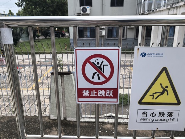 現(xiàn)場(chǎng)可見“限4人”標(biāo)識(shí)明確了樓梯同時(shí)承載的人員數(shù)量上限,防止因人員過(guò)度聚集引發(fā)樓梯荷載超標(biāo)問(wèn)題;“禁止跳躍”標(biāo)識(shí)以醒目的圖案和文字,警示通行人員切勿在樓梯上做出跳躍等危險(xiǎn)動(dòng)作;“當(dāng)心跌落”標(biāo)識(shí)則時(shí)刻提醒大家注意腳下,防范跌落風(fēng)險(xiǎn)。