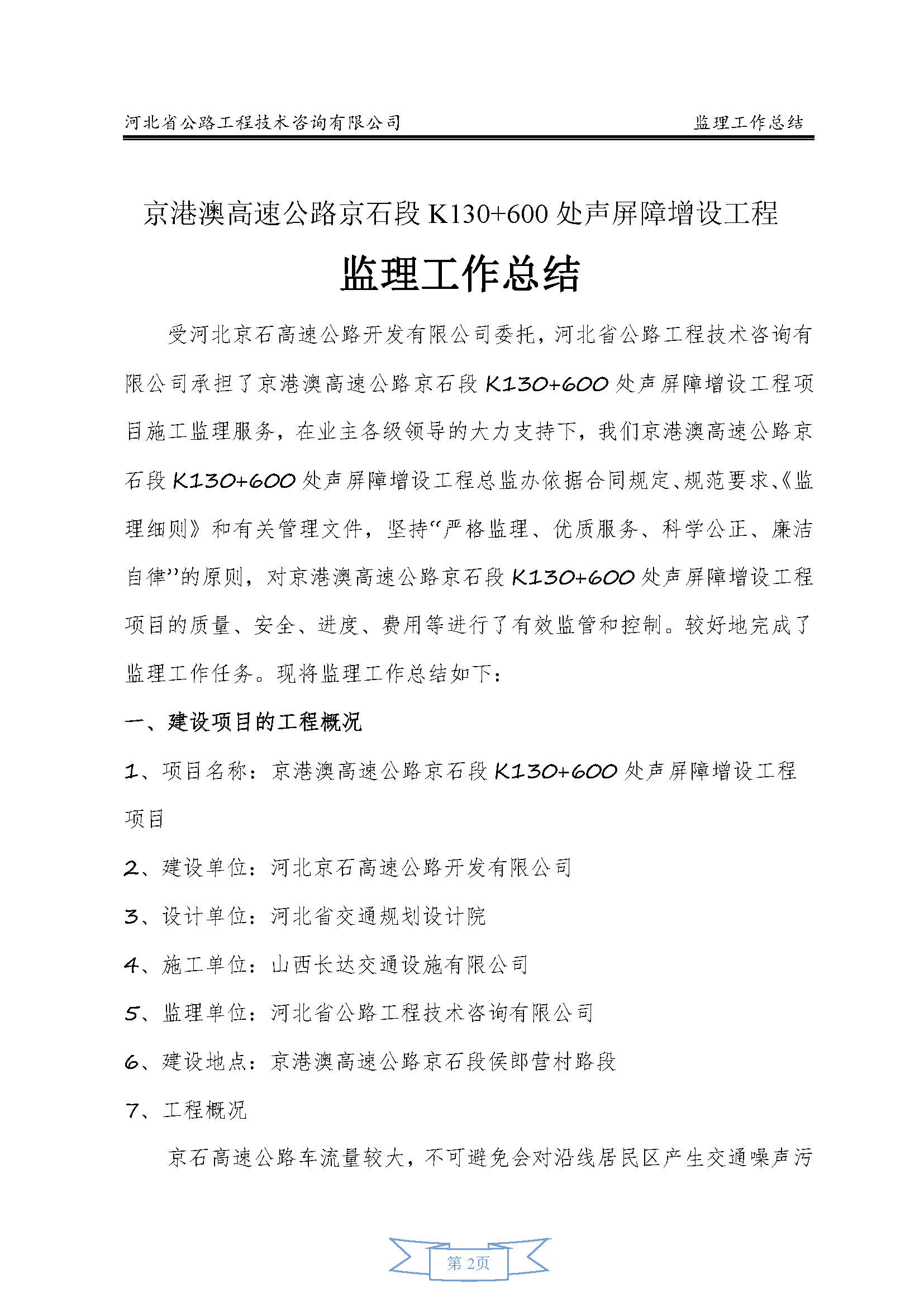 K130+600 處聲 屏障增設(shè)工程監(jiān)理報(bào)告
