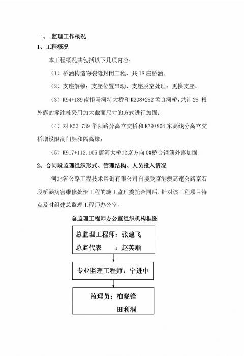 橋涵病害處治工程QH-1標監(jiān)理報告
