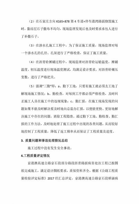 部分路段瀝青路面處治工程監(jiān)理報告