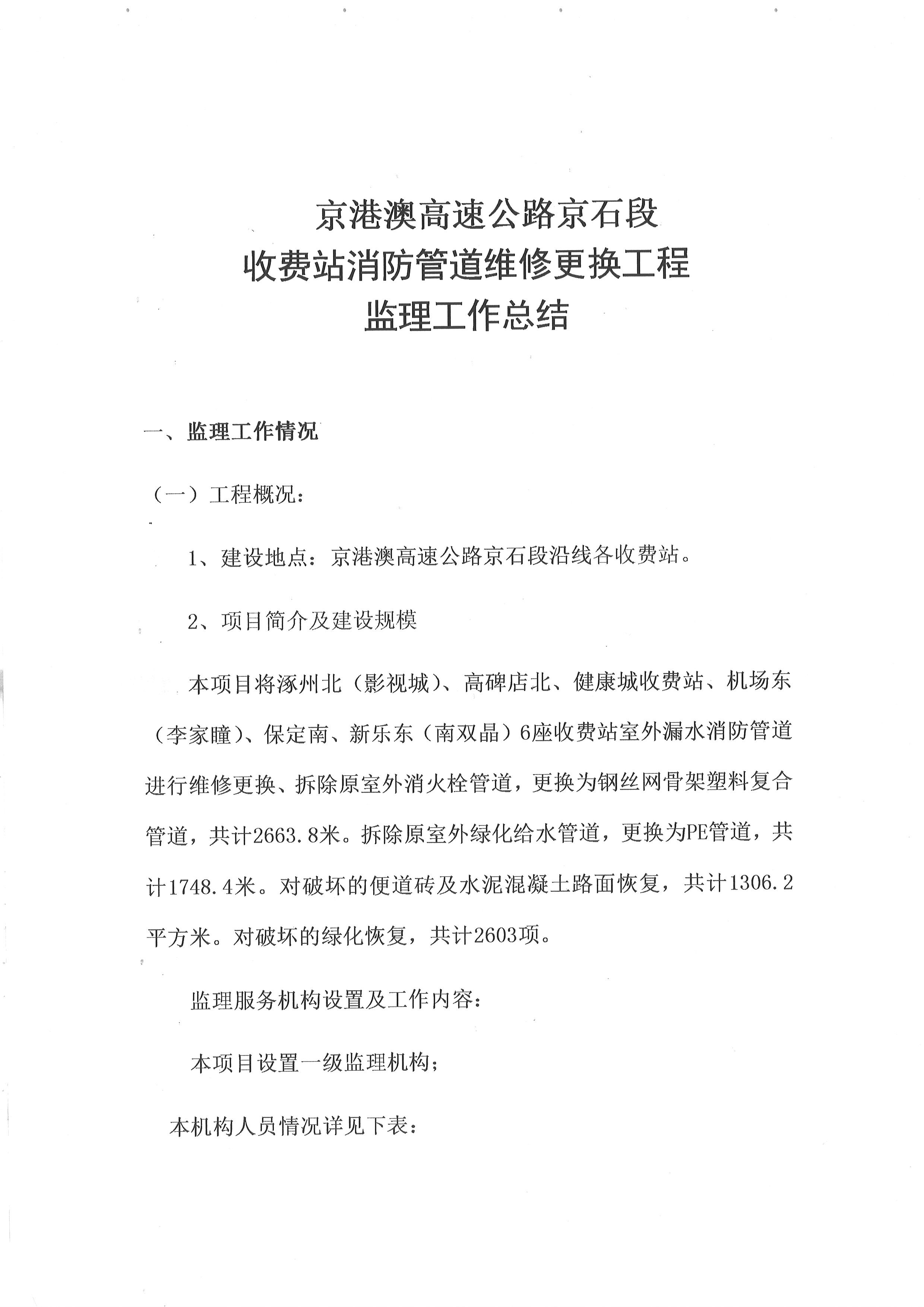 2022年京港澳高速京石段收費站消防管道維修更換工程監(jiān)理工作總結(jié)