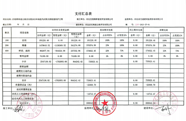 京港澳高速公路京石段南拒馬河特大橋樁基防護(hù)工程支付證書(shū)南拒馬支付證書(shū)