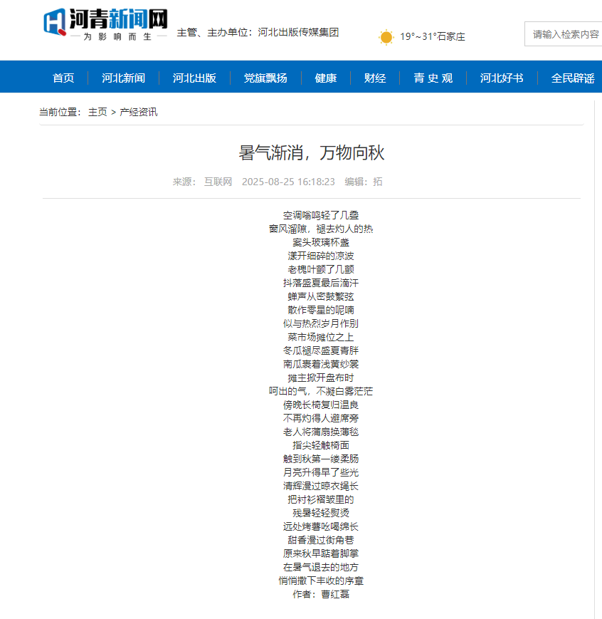 【河青新聞網(wǎng)】暑氣漸消 萬物向秋