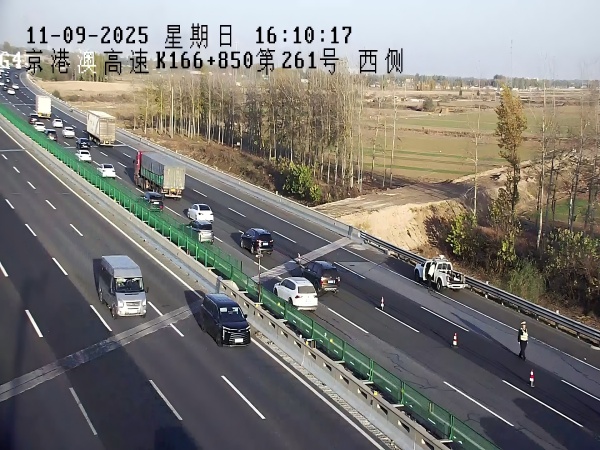 15時(shí)50分,在京石高速K166+850處,一輛大貨車因爆胎??啃熊嚨?。智慧調(diào)度中心的智能視頻監(jiān)測系統(tǒng)立即識(shí)別異常并自動(dòng)報(bào)警。監(jiān)控員接報(bào)后,迅速鎖定事件準(zhǔn)確位置,通過沿線情報(bào)板發(fā)布警示信息,并同步調(diào)度附近交警和救援車輛趕赴現(xiàn)場。