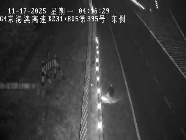 2025年11月17日3時57分,智慧調(diào)度監(jiān)控中心接到省中心電話通知,京石高速石家莊方向K233處快車道有行人走動,行人在車道走動不僅違反了高速公路管理規(guī)定,更將自身生命安全置于險境,同時也對過往車輛造成干擾,極易引發(fā)交通事故。