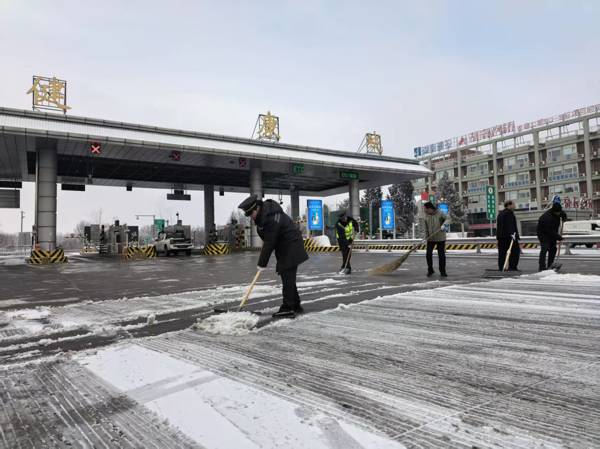 未雪綢繆,聞雪而動。在接到降雪預(yù)警后,健康城收費站提前備足應(yīng)急物資,合理部署人員力量。降雪開始后,本站立即啟動應(yīng)急預(yù)案,人員設(shè)備第一時間到位,采取機械與人工相結(jié)合的方式,對收費廣場、車道及連接道路展開循環(huán)清雪作業(yè)。通過及時潑灑融雪劑并快速清理,有效防止了道路結(jié)冰,確保了“雪停路清”,保障了車輛安全快速通行。