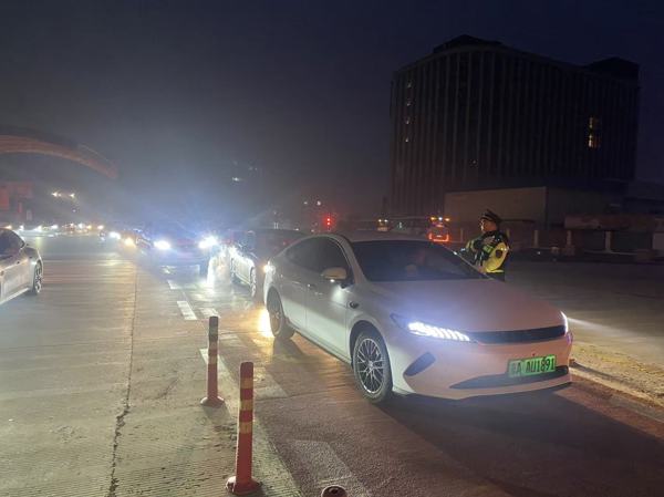 受大霧天氣影響,涿州站對(duì)北京方向?qū)嵤┫扌写胧?,并暫時(shí)關(guān)閉石家莊方向。涿州站第一時(shí)間啟動(dòng)應(yīng)急預(yù)案,在全力疏導(dǎo)滯留車(chē)輛的同時(shí),同步做好服務(wù)保障工作,確保站口車(chē)輛通行平穩(wěn)有序。