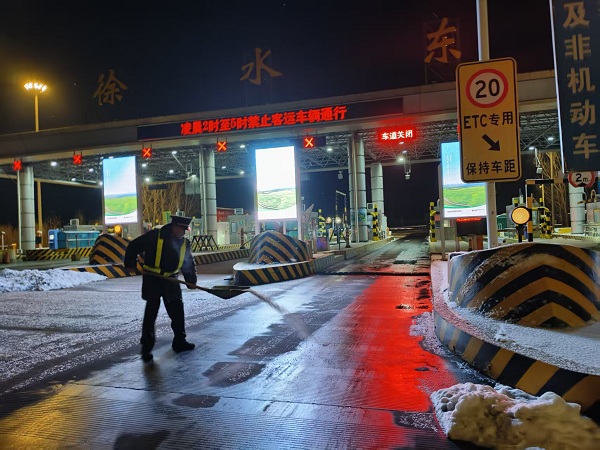 當(dāng)四九天的寒風(fēng)吹透了棉服,當(dāng)夜色讓氣溫跌破冰點,在徐水收費(fèi)站車道上,卻有這樣一群人,正迎著寒風(fēng)飄雪忙碌。