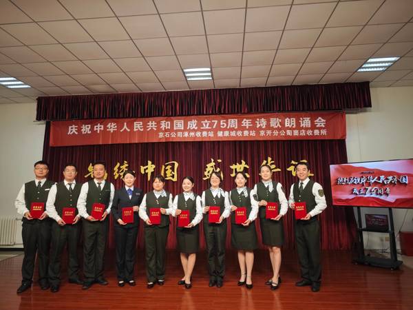 錦繡中國(guó),盛世華誕,七十五載,征程如虹。為隆重慶祝中華人民共和國(guó)成立七十五周年,延續(xù)京冀兩地高速收費(fèi)站共建深情,共同抒發(fā)熱烈的愛(ài)國(guó)情懷,9月30日上午,健康城收費(fèi)站、涿州收費(fèi)站黨支部聯(lián)合兩站分會(huì)與京開(kāi)分公司竇店收費(fèi)所,在健康城站共同開(kāi)展了慶祝中華人民共和國(guó)成立75周年詩(shī)歌朗誦會(huì)活動(dòng)。奮斗在祖國(guó)交通事業(yè)一線的工作者們,滿懷豪情,把對(duì)祖國(guó)的無(wú)盡熱愛(ài)熔鑄于一首首激情澎湃的詩(shī)篇之中,以詩(shī)的激昂韻律,歌頌祖國(guó)的壯麗騰飛。
