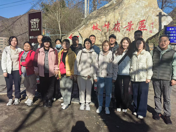 秋日的陽光灑在身上,每位員工的臉上都洋溢著興奮與期待。坡峰嶺那漫山遍野的紅葉像是大自然打翻的調(diào)色盤,遠遠望去,紅的似火,黃的如金,層林盡染,美不勝收。