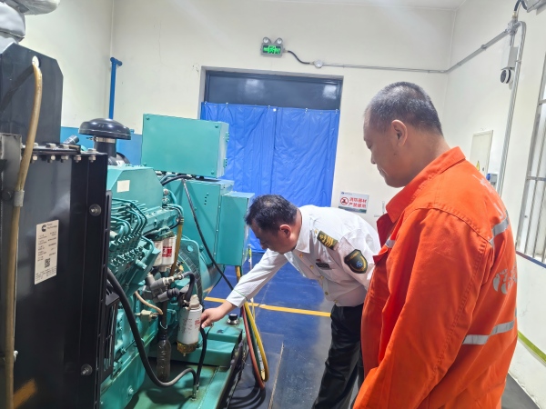 首先檢查柴油發(fā)電機(jī)房。發(fā)電機(jī)作為收費(fèi)站在突發(fā)停電情況下保障正常運(yùn)營的關(guān)鍵設(shè)備,其運(yùn)行狀況至關(guān)重要。段青松副站長和小組成員仔細(xì)檢查了發(fā)電機(jī)的狀態(tài),查看是否存漏油、漏防凍液現(xiàn)象等情況。同時(shí)對柴油儲(chǔ)備情況進(jìn)行了檢查,確保在節(jié)日期間有足夠的燃料供應(yīng)。此外還重點(diǎn)檢查了發(fā)電機(jī)房的通風(fēng)情況,保證良好的通風(fēng)條件。