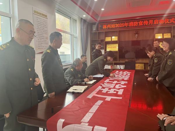 舉行啟動(dòng)儀式,吹響消防“集結(jié)號(hào)”。涿州站高度重視,隆重舉行消防宣傳月活動(dòng)啟動(dòng)儀式。儀式上,站長(zhǎng)發(fā)表動(dòng)員講話,明確活動(dòng)意義與要求,全體人員在條幅上鄭重簽名承諾,正式拉開了消防宣傳月系列活動(dòng)的序幕,營(yíng)造了“人人參與消防、共筑平安站區(qū)”的積極氛圍。